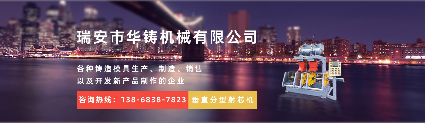 瑞安市華鑄機械有限公司,創(chuàng)建于2014年,位于經(jīng)濟發(fā)達(dá)的機械制造基地——溫州。本公司是一家致力于全自動重力澆鑄機、射芯機殼芯機、覆膜砂設(shè)備、各種鑄造模具生產(chǎn)、制造、銷售以及開發(fā)新產(chǎn)品制作的企業(yè)。